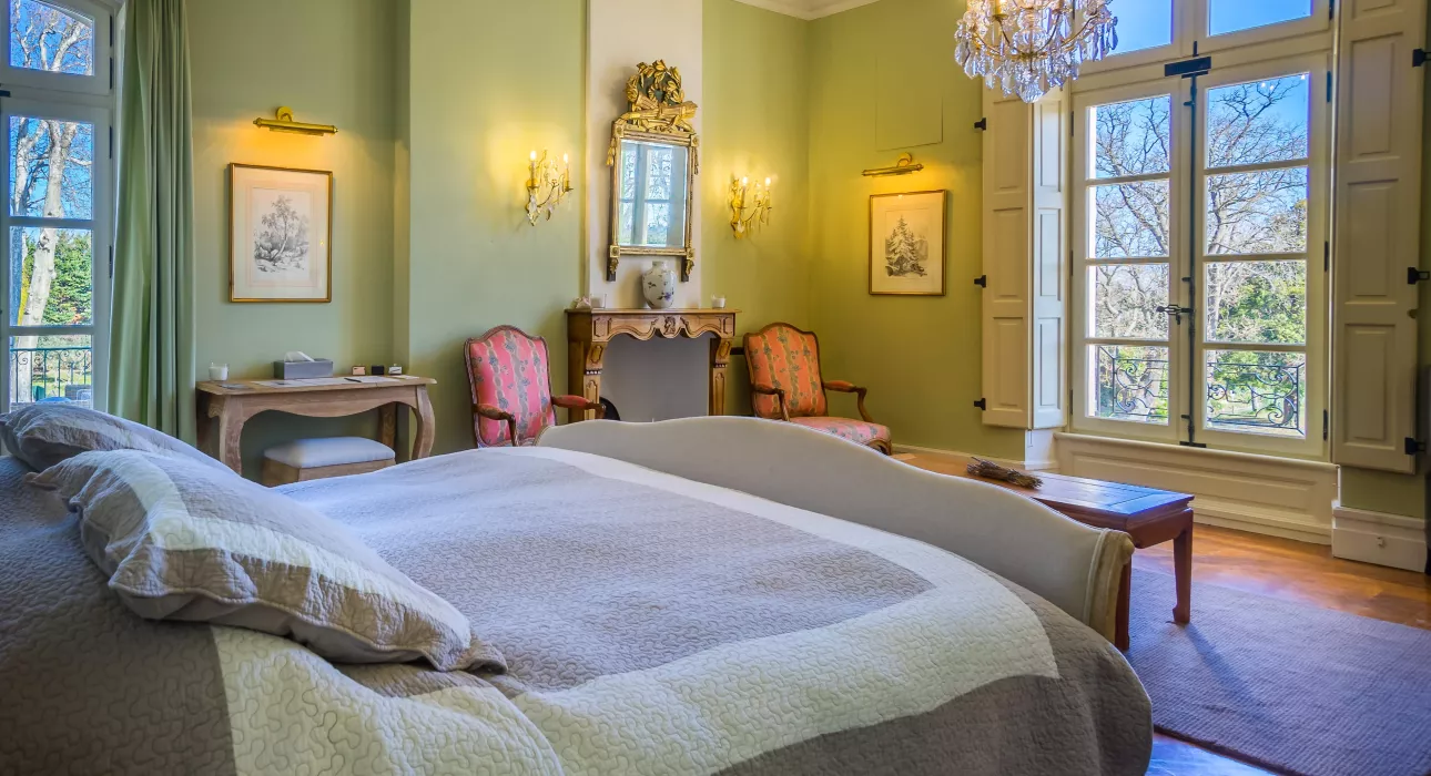 En termes d’hébergement, il propose 16 chambres de 20 à 50 m2, toutes équipées de salles de bain individuelles avec bain et/ou douche. Neuf d’entre elles sont situées dans le Château et sept autres dans l’annexe. Le Château dispose d’une cuisine entièrement équipée, d’un salon principal avec vue sur le parc sud, d’une salle à manger pouvant accueillir 15 personnes, d’une salle de billard et d’une salle de télévision. A disposition des hôtes également : notre cave à vins. Les espaces extérieurs tels que le patio et la cuisine d’été se prêtent parfaitement à tous vos repas en extérieur.