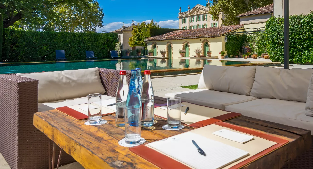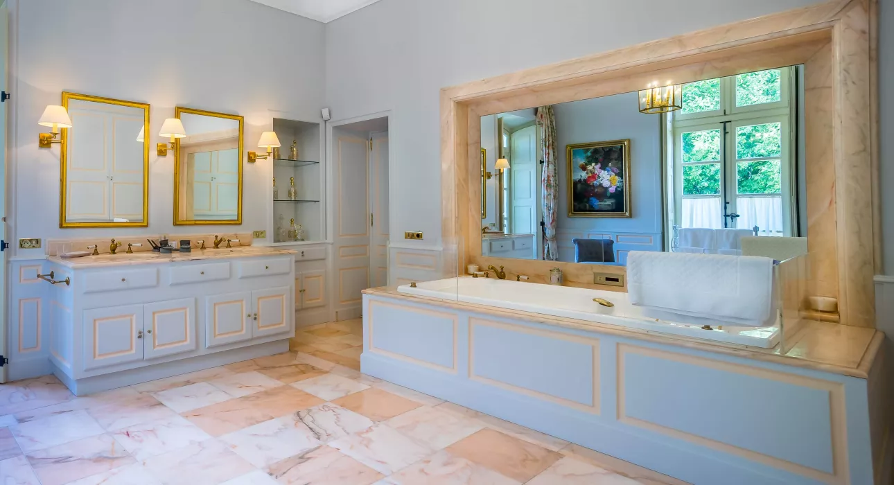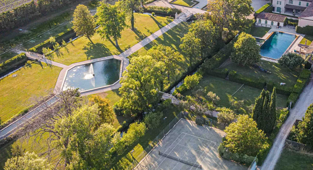 Vous profiterez, grâce à la privatisation complète, de la superbe piscine à débordement, des terrains de tennis/volley-ball/basket-ball/pétanque et pour la partie intérieure, d’un espace fitness et d’un squash. Les espaces extérieurs offrent la possibilité d’organiser des événements jusqu’à 150 personnes : cocktails, fêtes ou bien sûr, le plus beau jour de votre vie. Le parc est un véritable havre de paix avec ses jardins à la Française, ses fontaines et cours d’eau, ses ponts ou encore son verger et son potager.