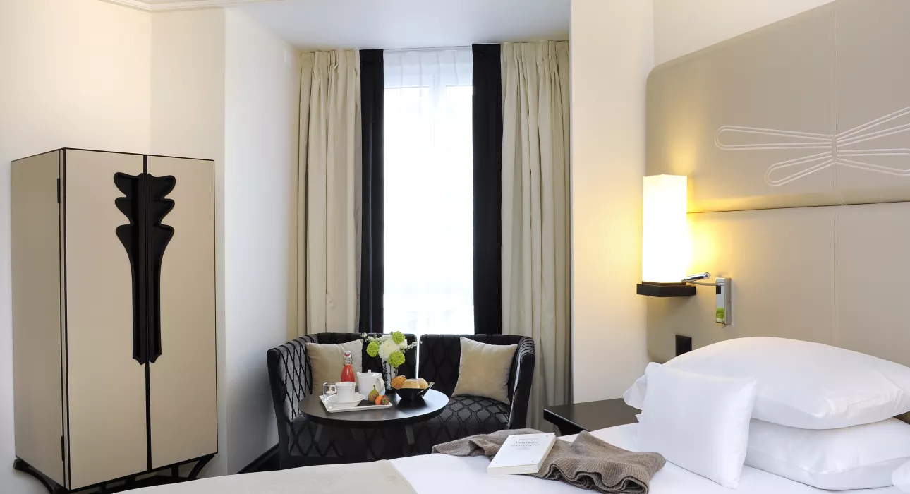 L’hôtel Tiffany de style art nouveau comprend un total de 65 chambres et suites, mêlant chic, authenticité et modernité. Situé au cœur du quartier de Plainpalais sur la rive gauche, il permet aisément de visiter Genève et ses différents points d’intérêts touristiques. Cette adresse de charme possède un restaurant servant une cuisine créative avec des produits frais et de saison, ainsi qu’un brunch durant le weekend. Son bar de style anglais, à l’ambiance feutrée, propose un grand choix de vins ainsi qu’une carte snacking pour les petites faims. C’est un lieu convivial qui invite à la détente et permet de faire des rencontres.